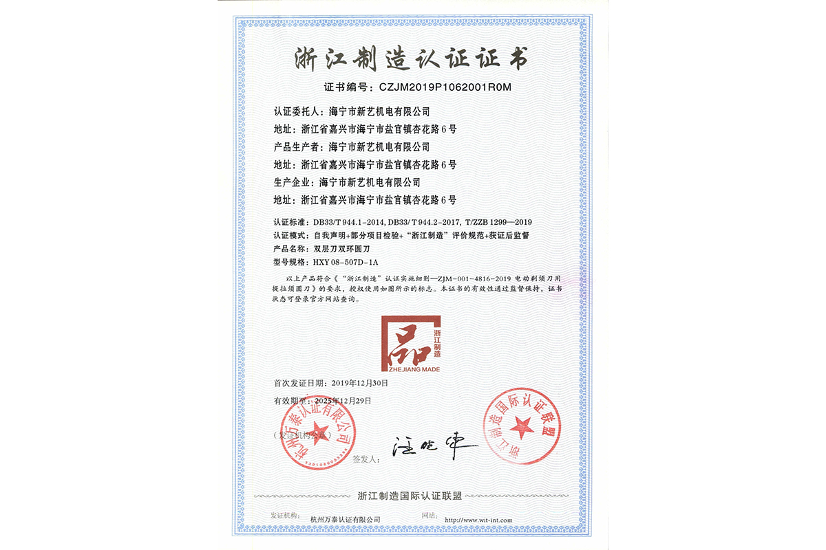 海寧市新藝機電有限公司始建1987年,于1994年開始投入剃須刀刀網生產行業,是國內自行設計研發、規模化生產旋轉式狹面網縫圓刀的企業。公司位于世界著名的“觀潮勝地”-海寧市鹽官鎮,注冊資金2600萬元,占地面積3.6萬余平方米,職工500余人。