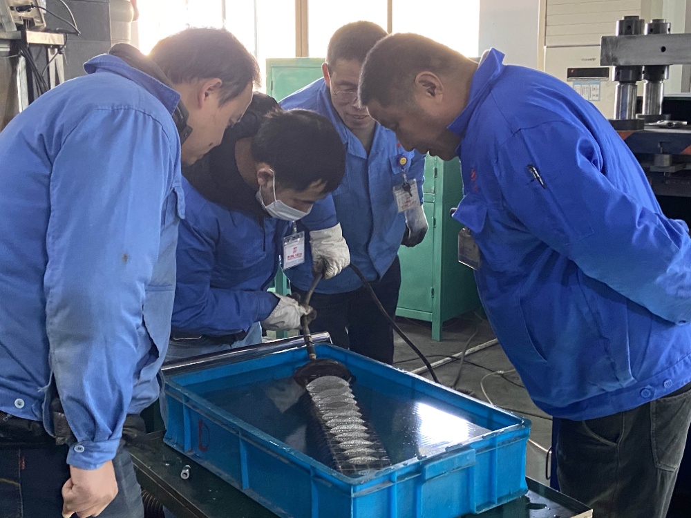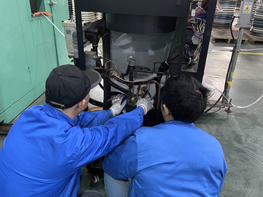 近期,一車(chē)間的一臺(tái)沖壓設(shè)備出現(xiàn)自動(dòng)報(bào)警,不能正常工作,經(jīng)查,是一個(gè)零部件的銅管出現(xiàn)破裂,導(dǎo)致氟利昂泄露,設(shè)備溫度過(guò)高,從而不能正常運(yùn)行。據(jù)悉,重新購(gòu)置這個(gè)零部件費(fèi)用昂貴。為使設(shè)備盡快恢復(fù)正常運(yùn)轉(zhuǎn),不耽誤生產(chǎn)任務(wù),金工車(chē)間躬身入局,承擔(dān)起維修重任。