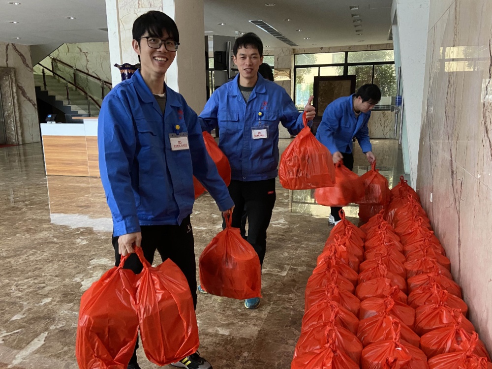 根據疫情防控要求,我公司積極響應政府號召,鼓勵員工就地過年,并將傳統的聚餐吃年夜飯的方式改為把年夜飯分餐打包,由員工拎回家,在自己家里吃年夜飯的方式,避免了人群的大規模聚集,有效減少感染概率。